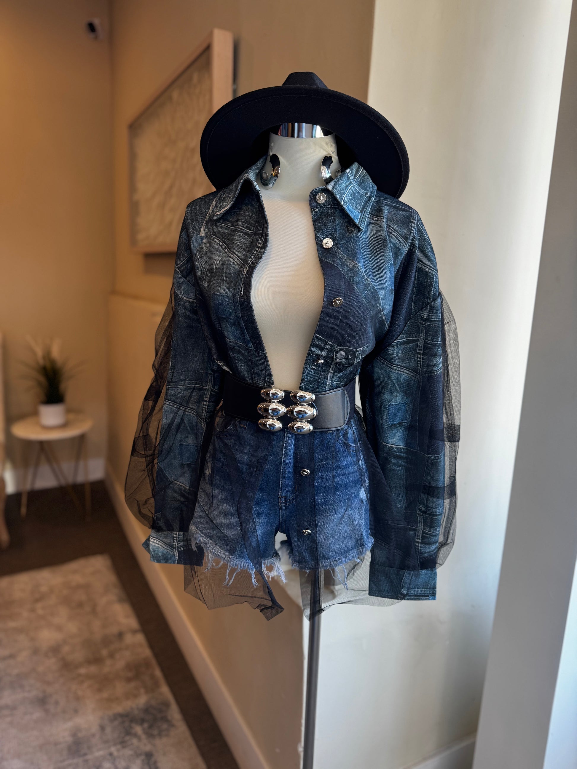 Denim Tulle Top