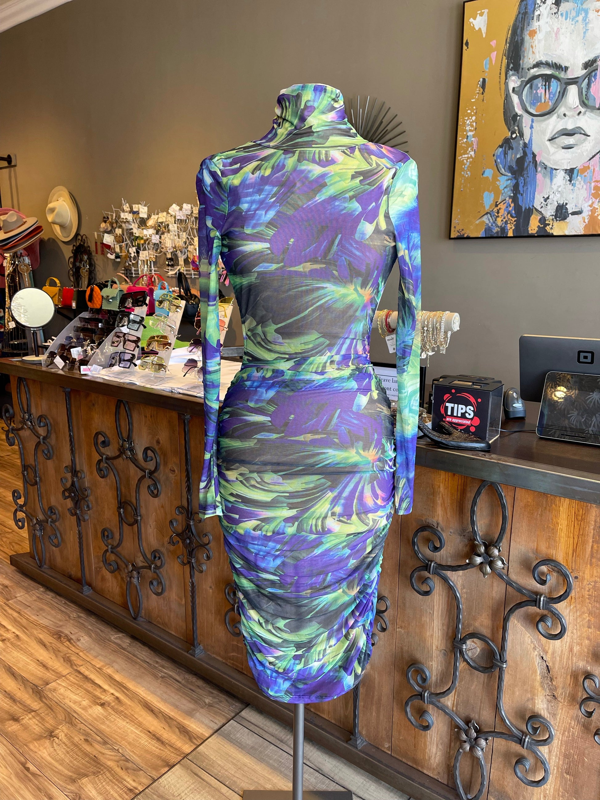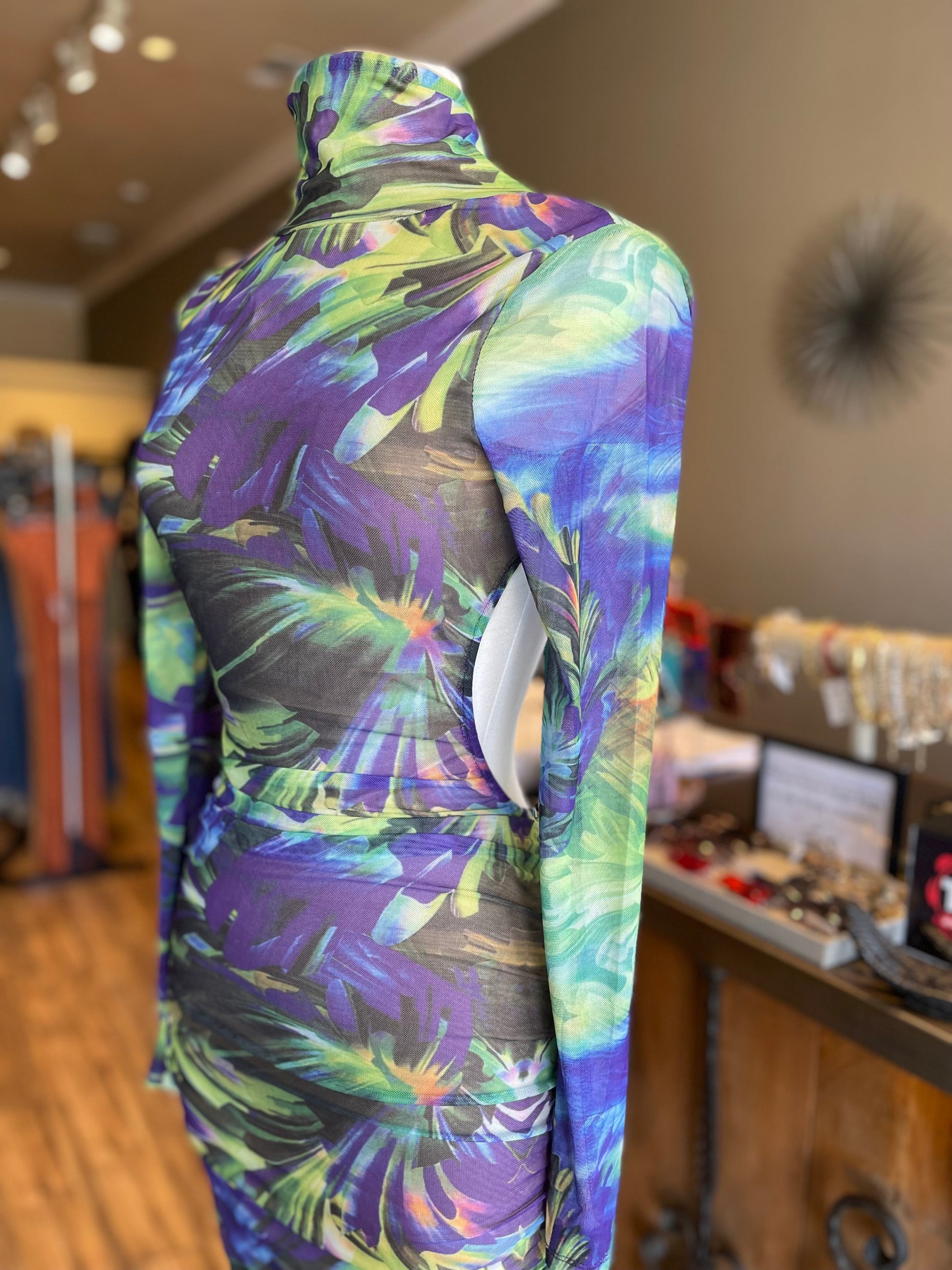 Printed Backless Scrunge TN Dress